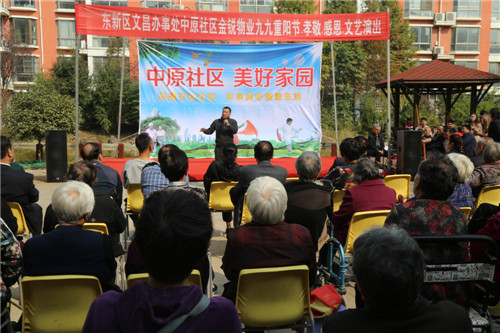 金秋十月,菊花飄香。10月17日重陽節(jié)當(dāng)天,東新區(qū)中原社區(qū)攜同金銳物業(yè)在該社區(qū)組織開展了“擁抱新時代 歡度重陽節(jié)”文藝演出活動。東新區(qū)社會事務(wù)局局長朱放哲,房屋征收中心主任閆國政,文昌辦事處主任李向峰,國庫支付中心副主任科員齊孟磊,文昌中學(xué)副校長康瑞玲參加活動。