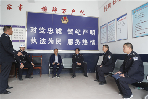 在兩所警務室,何新敏與鄉鎮負責人及入駐民警、輔警進行溝通交流,了解村警務室辦公地點選擇、警務室軟硬件設施、裝備配備等工作落實情況,詳細詢問警務室值班備勤情況,對駐村警務室工作滯后情況提出了針對性建議,要求限期整改。