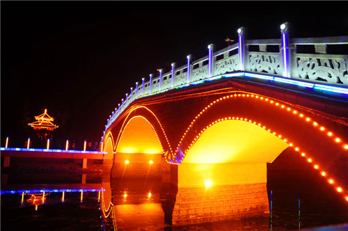 統計數據顯示,貫穿城區“五河”的濱水景觀廊道目前已達45公里,環繞互通的水系雨污分流,清波蕩漾,千年古城活力再現;沿岸廣場、游園、玉欄、花木、亭、廊、親水平臺,玲瓏別致,相映成趣,形成了無數個多元空間,為市民提供了休閑健身空間和漫步快跑的理想場所;城區的50多座街心主題文化園,依勢而修,與沿河的美化、綠化、亮化融為一體,每天傍晚,清波蕩漾,虹橋飛架,臥波噴泉伴隨著悠揚的音樂翩翩歡舞,“五河”上下,燈火璀璨,絢麗多彩,如夢如幻。“九河繞真源,五湖潤鹿邑”的生態水系景觀讓行走其間的人恍若走進江南水鄉,人在水上,水在畫中的美妙意境讓行走其間的人身心放松、回歸自然。