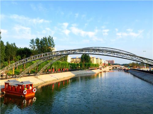 一座城市有了水,就有了靈氣。得益于得天獨厚的歷史文明和自然條件,自2015年開始,鹿邑縣委,縣政府從城市永續發展的長遠需求出發,按照“以水潤城、以綠蔭城、以文化成、以業興城”的戰略規劃,堅持因地制宜、以人為本、生態優先的建設管理理念,著力構建科學規范的水管理體系、人水和諧的水生態體系、水清岸綠的水環境體系、高效利用的水資源體系、安全可靠的防洪排澇體系,以及特色鮮明的水文化和水景觀體系。通過大力實施生態水系建設,將幾條先前被當地群眾戲稱為“龍須溝”的城區風景河、急三道河、護城河、閆溝河、鹿辛運河,改造成為百步有景致、滿目皆風光的生態示范帶、綠色休閑健身長廊,初步實現城在水中、城在園中、城在綠中的生態、海綿型城市建設目標,如今的老子故里可謂是“藍天白云常作客,碧水漣漪入畫來”,成為宜居、宜業、宜游的詩意園林城、生態水韻城、溢彩文化城。