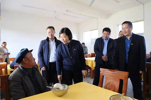 在寧平鎮敬老院,羅文閣一行深入院民宿舍、食堂,詳細查看敬老院生活條件改善和基礎設施建設情況,與正在用餐的院民親切交談,仔細查看伙食衛生標準等情況,詳細詢問五保老人集中供養、入住數量等情況,就進一步加強鄉鎮敬老院提升改造提出要求。