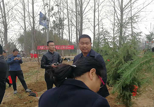 當天下午雖然暖陽照射,但初冬的鹿邑大地仍是涼風習習。不過這一點兒也沒有影響到大家的心情。一到植樹現場,梁建松、李剛等領導就和大家一起興致勃勃地拿起鐵鍬等工具忙碌起來,揮鍬鏟土,扶樹填土,澆水正苗,每道工序都做得認真細致、一絲不茍。