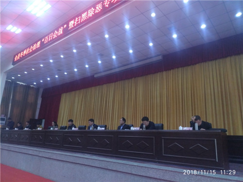 11月15日上午,鹿邑縣在縣委黨校一樓報(bào)告廳召開全縣冬季社會(huì)治安“百日會(huì)戰(zhàn)”暨掃黑除惡專項(xiàng)斗爭推進(jìn)會(huì)。會(huì)議對(duì)全縣冬委社會(huì)治理“百日會(huì)戰(zhàn)”第一次工作以及全縣掃黑除惡專項(xiàng)斗爭第五次工作進(jìn)行通報(bào);縣領(lǐng)導(dǎo)梁建松、侯自峰、王曉征、何新敏、齊梅英、魯建軍等出席會(huì)議。縣直各局委、各鄉(xiāng)鎮(zhèn)辦事處主要負(fù)責(zé)人、綜治辦主任和各基層派出所長、司法所長以及來自公安、檢察、法院、司法戰(zhàn)線的干警近千人參加會(huì)議。