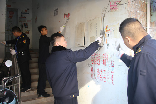 為深入推進“五成聯創”工作,11月份以來,周口港區城管、公安等部門根據港區黨委、管委會的工作部署,聯合在轄區范圍內開展小廣告專項整治行動。