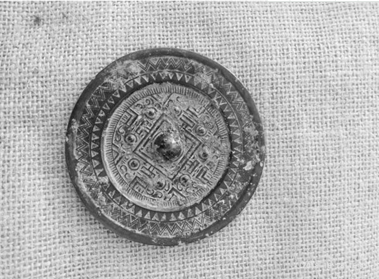 據悉,這批墓葬因埋藏較淺,均遭到嚴重破壞,出土文物大部分為器物陶片。從殘片上看主要有陶盆、耳杯、陶案、陶樽、陶罐、陶甕、銅錢、銅鏡等,其中八乳規矩鏡是這次出土的珍貴文物。