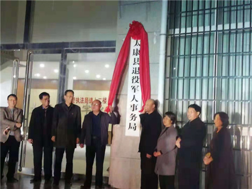 11月27日,太康縣退役軍人事務(wù)局掛牌成立。縣委常委、常務(wù)副縣長張保華,縣委常委、副縣長韓維俊,縣政協(xié)副主席、縣民政局局長劉鳳芹出席揭牌儀式。縣編辦主任毛雙龍、縣退役軍人事務(wù)局干部職工參加揭牌儀式。