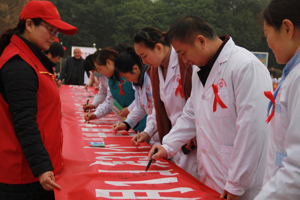 11月30日上午,由項城市衛(wèi)生計生委組織,來自項城市疾控中心、市第一人民醫(yī)院、市中醫(yī)院、市婦幼保健院及市內的其它十余家醫(yī)療機構,共同在該市人民公園舉行第31個“主動檢測,知艾防艾,共享健康”的“世界艾滋病日”主題宣傳活動。活動現場,醫(yī)護人員共向群眾發(fā)放宣傳資料1800余冊(種),接受230多人次的咨詢服務,大力宣傳倡導建立文明健康的生活方式,并希望大家都能正視艾滋、關注艾滋、預防艾滋。