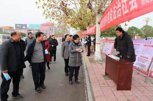 羅文閣一行邊走邊看,和工作人員認(rèn)真交談,詳細(xì)了解普法宣傳教育活動開展情況。羅文閣指出,憲法是國家的根本法,是治國安邦的總章程,全縣上下要堅(jiān)持以習(xí)近平新時(shí)代中國特色社會主義思想為指導(dǎo),把憲法學(xué)習(xí)宣傳工作擺在當(dāng)前工作重要位置,深入開展以憲法為核心的法治宣傳教育,教育引導(dǎo)各級組織和全體公民牢固樹立憲法和法律意識,在全社會營造濃厚的法制宣傳氛圍。要深入開展“法律六進(jìn)”,提高全民法律素質(zhì);要積極開展“民主法治村”“民主法治社區(qū)”創(chuàng)建活動;要繼續(xù)圍繞全縣脫貧攻堅(jiān)決策部署,開展法治宣傳教育助力精準(zhǔn)扶貧攻堅(jiān)活動;要加強(qiáng)法治文化建設(shè),營造法治文化氛圍;要注重優(yōu)化法律服務(wù)質(zhì)量,提升法律服務(wù)工作水平,切實(shí)維護(hù)群眾合法權(quán)益;要團(tuán)結(jié)奮進(jìn),開拓創(chuàng)新,扎實(shí)做好全面依法治縣各項(xiàng)工作,奮力開創(chuàng)新時(shí)代法治鄲城建設(shè)新局面。