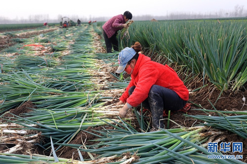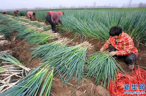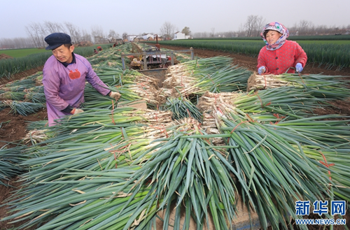 近年來,淮陽縣齊老鄉袁樓行政村大力發展特色種植,以“合作社+農戶”的形式種植大蔥4000余畝,每畝增收14000余元,帶動村里貧困人口35戶124人土地入股和就業,其中已有25戶脫貧。通過發展種植大蔥,該村從以前人均不足2000元的貧困村變成如今人均達到1萬多元的小康村。新華網發(楊正華 攝)