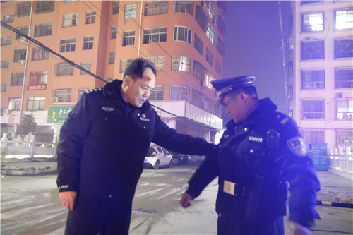 在城區各主要路段,何新敏一行遇到正在開展巡邏防控的控申大隊大隊長陳士祿等人,囑咐大家要注意防寒保暖,他要求執勤民警要切實將巡邏防控工作落到實處,將車巡和步巡有機結合,提升街面見警率,進一步震懾違法犯罪,擠壓犯罪空間。要求在巡邏防控中要主動幫助需要幫助的群眾,提升群眾安全感和滿意度,展示好公安民警良好形象。