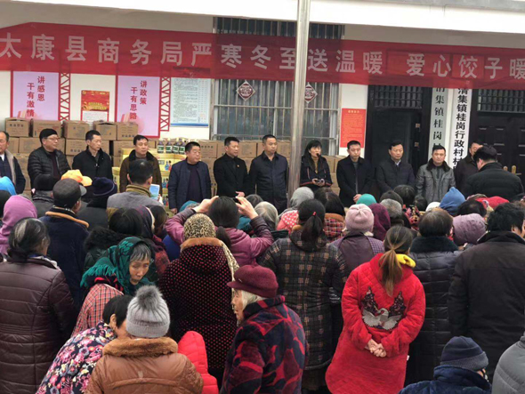 12月21日下午,冬至前夕,太康縣副縣長喬偉、縣商務局局長李曉紅,清集鎮黨委書記吳文靜,帶著對貧困群眾的關心、關愛,到太康縣清集鎮張子影行政村、桂崗行政村開展嚴寒冬至送溫暖,愛心餃子暖人心扶貧慰問活動。