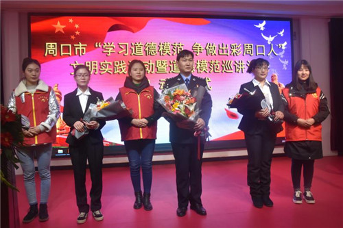 12月21日下午,周口市“學習道德模范 爭做出彩周口人”文明實踐活動暨道德模范巡講活動在扶溝縣新時代文明實踐中心啟動。市委宣傳部副部長劉淑君、市文明辦副主任劉成華、各縣(市、區(qū))文明辦主任和扶溝縣各界人士共同聽取了王凱偉、李艷琴和劉交交三位道德模范的所作的報告,接受了一次心靈的洗禮。