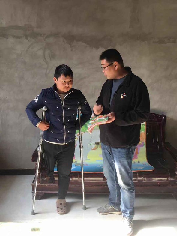 2018年10月4日,李霄在北丁莊村走訪,發(fā)現(xiàn)丁振偉輟學(xué)在家。原來,丁振偉在縣城一所民辦學(xué)校讀書,成績(jī)優(yōu)異,七年級(jí)時(shí)患病,四處求醫(yī)一年多,最終右腿高位截肢才保住性命,一直在家休養(yǎng)。