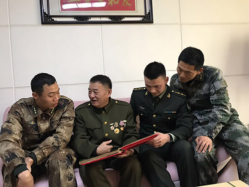 本報訊 追憶崢嶸歲月,鐵血軍魂永在。2月3日上午,春節的腳步越來越近,空氣中彌漫著節日喜慶的氣息。3名返鄉探親的“周口好兵”、一等功臣柳東坡、劉威、崔二偉相約慕名來到被中央軍委授予“英雄步談機員”榮譽稱號、一等功臣海水干家中,聆聽老英雄講述當年的戰斗事跡,上了一堂生動的國防教育課。