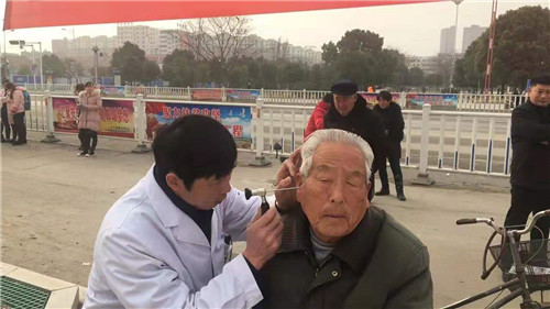 鄲城縣中醫(yī)院五官科主任任杰帶領(lǐng)科室人員為市民做免費(fèi)檢查。現(xiàn)場(chǎng)內(nèi),任杰悉心詢問患者耳朵有哪些方面的問題,并為患者做了相關(guān)的耳內(nèi)檢查,針對(duì)各類問題再提出日后應(yīng)該注意的方面并進(jìn)行用藥叮囑。