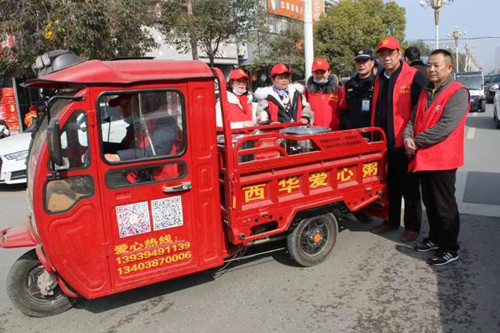 西華縣愛心粥屋組織個私黨員志愿者在女媧廣場開展“愛心茶水送滿城”活動,擺攤設點,出動流動車,免費送愛心棗茶。