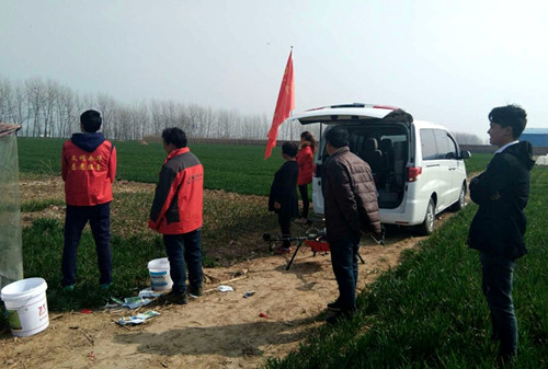 西華無人機產業園黨支部給紅花、皮營、西夏、艾崗、葉埠口、東夏等鄉鎮(辦事處)貧困村“小麥一噴三防”免費噴灑農藥,確保貧困戶今年夏糧豐收。