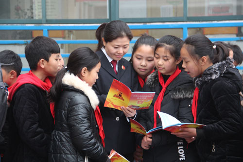 為進一步增強中小學生法制觀念,預防和減少校園欺凌事件、青少年違法犯罪案件的發生,營造良好的校園法治文化氛圍,提高學生的“學法、知法、守法、用法”和自我保護意識,加大對學生的司法保護力度,3月6日,曾榮獲全國先進集體的扶溝縣檢察院“女檢察官特別護未隊”的檢察官走進扶溝縣新村小學,開展以“預防校園欺凌,護航未成年人成長”為主題的普法活動,給該校800余名學生送去一堂生動的法治課。