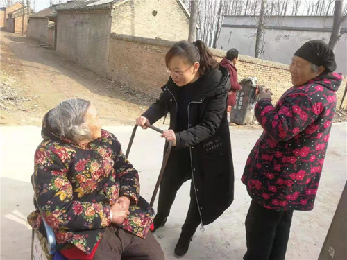 鏗鏘扶貧路,拳拳民生情。林娜加班加點,扎實的作風不僅有效推動了幫扶工作的順利推進,而且也換來了當地村民的“點贊”。為推進老人戶合吃合住問題,林娜三番五次去做工作,段屯行政村于樓村86歲的老人王全英,年邁不能自理,遭兒子嫌棄,3個兒子都不愿贍養老人。一次,陰雨天,老人不慎跌倒,摔傷胳膊,兒女們都不管不顧,林娜在走訪的過程中了解情況后,立即幫老人買來膏藥貼上,同時開始做兒女的思想工作,“家有一老似有一寶,孝親愛老是中華民族的傳統美德”,經過林娜再三做思想工作,三個兒子茅塞頓開,愿意贍養老人,最終老人在三個兒子家輪流吃住。在林娜及隊員的共同努力下,段屯行政村不僅老人戶全部合戶,而且在全村掀起了爭做賢孫孝媳的局面。一名老黨員袁士成,每次見了工作隊都豎起大拇指說:“兒女好,兒女好,兒女再好不如共產黨對俺好”。