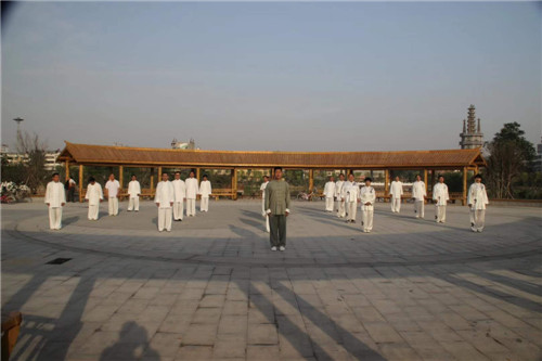 在李廣的示范帶動下,縣財政局先后又有10多人加入其中,形成了一個龐大的太極拳義務傳授團隊。幾年來,李廣團隊每天早晚堅持頭頂著晨曦、沐浴著夕陽,義務傳授太極拳,弘揚傳播老子文化,乘借著鹿邑既定的“產(chǎn)業(yè)興城、文化立縣”發(fā)展戰(zhàn)略東風,持續(xù)為唱響“老子故里、道家之源、道教祖庭、李姓之根”四大文化品牌添磚加瓦、吶喊助威。
