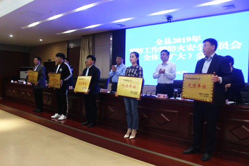 會議播放了火災案例警示片,通報了2018年度消防工作完成情況和《關于表彰2018年度全縣消防工作先進單位的通報》,各鄉鎮(局委)向陸縣長遞交了目標責任書,真源辦事處、縣產業聚集區、公安局、住建局、供電公司分別做了表態發言。