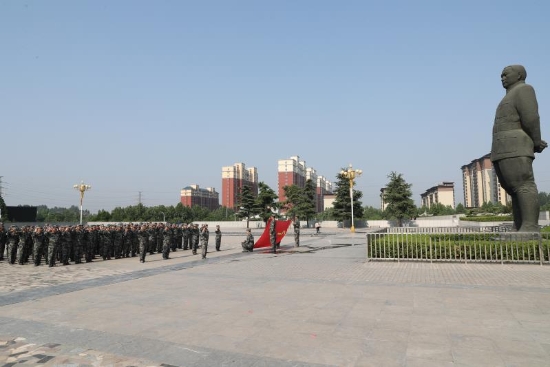 “我是中國民兵,我宣誓:服從中國共產黨領導,積極參加國家建設,忠實履行國防義務,遵紀守法,服從命令,忠于職守,努力學習……”當日上午,在吉鴻昌將軍塑像前,太康縣全體基干民兵集體重溫了民兵誓詞。