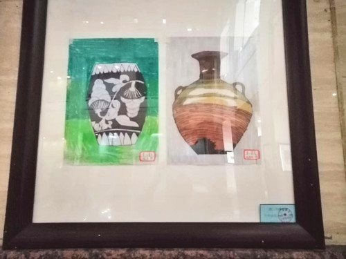 在文物繪畫作品展出區域,孩子們親手繪制出的近百幅文物繪畫作品,用畫筆與歷史對話,感悟著中華民族先人們的智慧結晶。