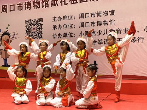 5月18日國際博物館日當天,周口市博物館舉行系列主題活動“如果文物會說話,我為祖國倍驕傲”詩歌朗誦活動、文物繪畫作品展活動。在活動現場,小朋友們帶來了精彩紛呈的節目,有根據市博物館的文物創作的詩歌作品《文物會說話:漢代玉豬》《文物會說話:戰國青龍玉佩》,有集體朗誦《中華頌》《初生的太陽》《我驕傲我是中國人》,還有獨唱、舞蹈、相聲、跆拳道、非洲鼓表演等,共同為本次活動增光添彩。