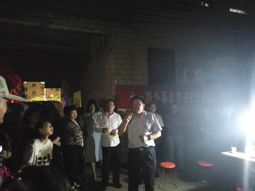 5月21日晚8時,區委書記李宗喜、區政協副主席梁顯棟、高新區管委會主任李翔與七一路辦事處負責人一起,來到位于交通路和工農路交叉口附近的陽光嘉苑小區,與居民們就創衛工作進行面對面的交流。
