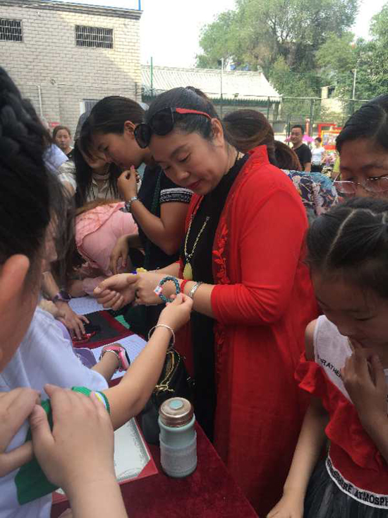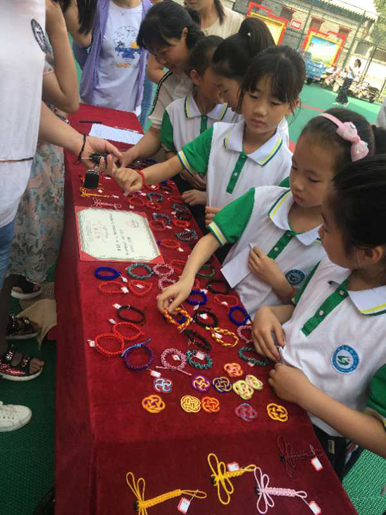5月25日上午,沈丘縣中國結第七代傳承人李?;ㄗ哌M槐店鎮回民小學,和學校“中國結”手工編織興趣班的20名學生舉行“愛心義賣,情暖校園”主題活動。不到半小時,100多件作品被搶購一空還預定了很多。據悉,這次義賣共得到1200余元,將全部捐給“槐店鎮中心學校教育基金”,用來資助該鎮經濟困難師生、獎勵優秀教師和學生、資助教育教研等重大活動項目。