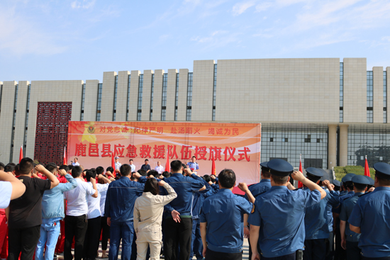 5月30日上午,鹿邑縣在縣文化中心廣場舉行應急救援隊授旗宣誓儀式,縣委常委、常務副縣長陸志杰現場為全縣新整合的15支專、兼職應急救援隊伍授旗,各應急救援隊伍在推選代表的帶領下,共同舉起右手進行了莊嚴的宣誓儀式。