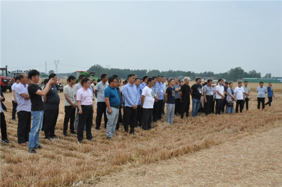 參會人員現場觀摩了小麥機收、秸稈還田、機械打捆、土地耕整、玉米播種等環節作業演示,聆聽技術講解,對小麥全程機械化作業方式進一步有了直觀了解。