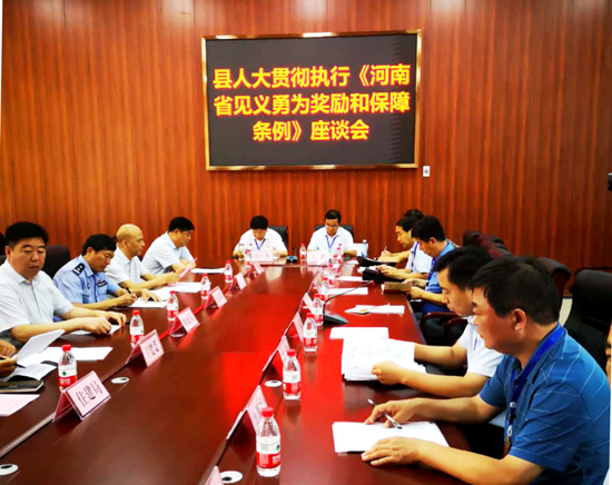 執法檢查組召開座談會,聽取縣政府及相關部門關于貫徹實施《河南省見義勇為人員獎勵和保障條例》情況的匯報。部分市縣人大代表就貫徹執行《條例》提出了一些意見和建議,檢查組對全縣落實《條例》情況給予充分肯定。