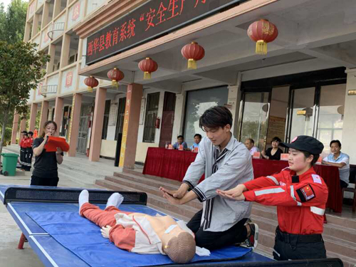 活動現場,消防教官為同學們講解了防火安全的重要性,火災的預防和救助,演示了滅火器的使用方法;西華縣紅十字會救護師耿佳佳、姚華杰二人為同學們現場生動講解演示“珍愛生命、預防溺水”的生動安全教育課,讓同學了解溺水的危害性,做好有效預防溺水的重要性,演示發生溺水怎么辦及對溺水者如何做胸外心臟按壓,同學們認真聆聽和學習,學會了判斷呼吸心跳停止、按壓手法、按壓位置、打開氣道方法、判斷呼吸心跳是否恢復等急救技能。同學還掌握了溺水急救基本標準:打開氣道、人工呼吸、胸外按壓。