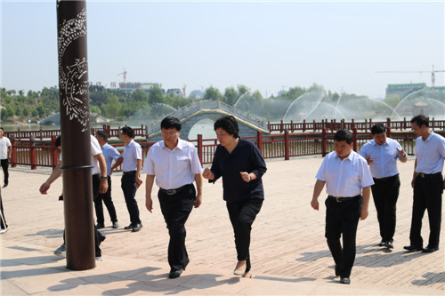 路云一行先后來到上清湖公園、閆溝河公園、陳摶公園提升暨古城墻恢復項目現場以及老子學院、渦河濕地公園等地進行實地察看,對鹿邑縣的國土綠化、“百城提質建設工程”、城市規劃建設及精細化管理等相關工作給予充分肯定。