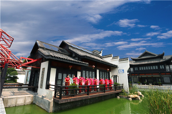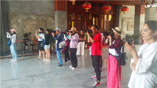 接著,采風隊伍走進中原紅木文化產業園。古典園林式紅木體驗中心、研發中心、紅木鑒定、拍賣中心、紫檀館、珍藏館、博物館等地都有人員駐足拍照或攝影。小橋流水間、曲徑回廊處模的特隊表演,也不時引來眾人觀看留影。