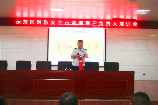 為切實做好消防安全示范街建設(shè)標(biāo)準(zhǔn)創(chuàng)建活動,提高廣大群眾的消防安全意識,有效預(yù)防和減少火災(zāi)事故發(fā)生。近日,城鄉(xiāng)一體化示范區(qū)消防救援大隊組織召開消防安全示范街商戶負責(zé)人培訓(xùn)會,培訓(xùn)會由區(qū)消防救援大隊隊長高磊主講,轄區(qū)內(nèi)府苑街及府匯街的120余名商戶負責(zé)人參加了培訓(xùn)。