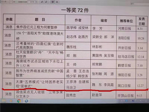 據(jù)介紹,本屆河南新聞獎(jiǎng)獲獎(jiǎng)作品具有“把握時(shí)代脈搏 謳歌時(shí)代精神”“反映重大主題 積極服務(wù)大局”“講述中國故事 彰顯主流價(jià)值”等特點(diǎn),主題深刻、事實(shí)準(zhǔn)確、文風(fēng)生動(dòng)、表現(xiàn)新穎,充分反映我省新聞戰(zhàn)線積極宣傳報(bào)道黨的十八大以來我省發(fā)展的歷史成就、歷史變革,報(bào)道我省各行各業(yè)改革開放的豐碩成果和感人事跡,特別是聚焦打贏精準(zhǔn)扶貧攻堅(jiān)戰(zhàn),形成宣傳的強(qiáng)大聲勢。作品堅(jiān)持正確的輿論導(dǎo)向、唱響主旋律、大力宣傳社會主義核心價(jià)值觀,為新時(shí)代中原更加出彩提供強(qiáng)有力的輿論支撐和良好的輿論氛圍。《太康“五養(yǎng)模式”讓特困養(yǎng)老實(shí)現(xiàn)“菜單式”》具有“重大題材”“重大影響”“重大意義”等特點(diǎn),經(jīng)過專家層層評審,最終在眾多參評作品中脫穎而出,一舉奪得了河南新聞獎(jiǎng)一等獎(jiǎng)。