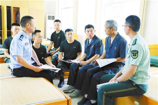7月26日上午,太康縣人民法院的法官們來到縣武警中隊,為武警官兵提供法律咨詢和服務活動,解決他們在日常工作、生活中遇到的法律問題,并向他們贈送《軍人維權指南》《法律小常識》等有關法律書籍及慰問品,受到了熱烈歡迎。圖為該院法官向武警官兵講解法律常識。