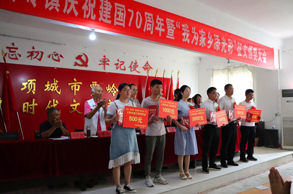 8月2日上午,項城市賈嶺鎮舉辦慶祝新中國成立70周年暨“我為家鄉添光彩”主題征文頒獎活動。項城市委常委、統戰部長段曉及項城市文化廣電和旅游局、賈嶺鎮主要負責人出席活動。