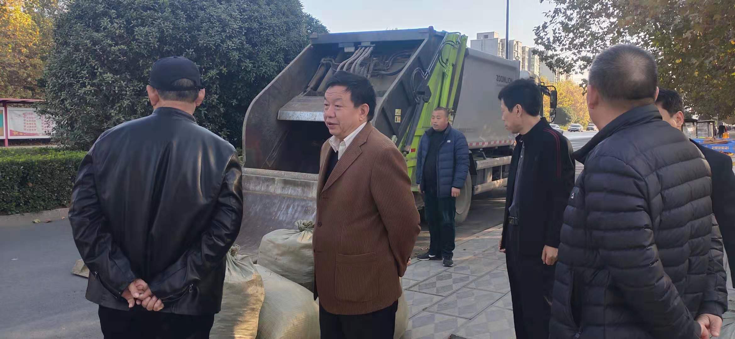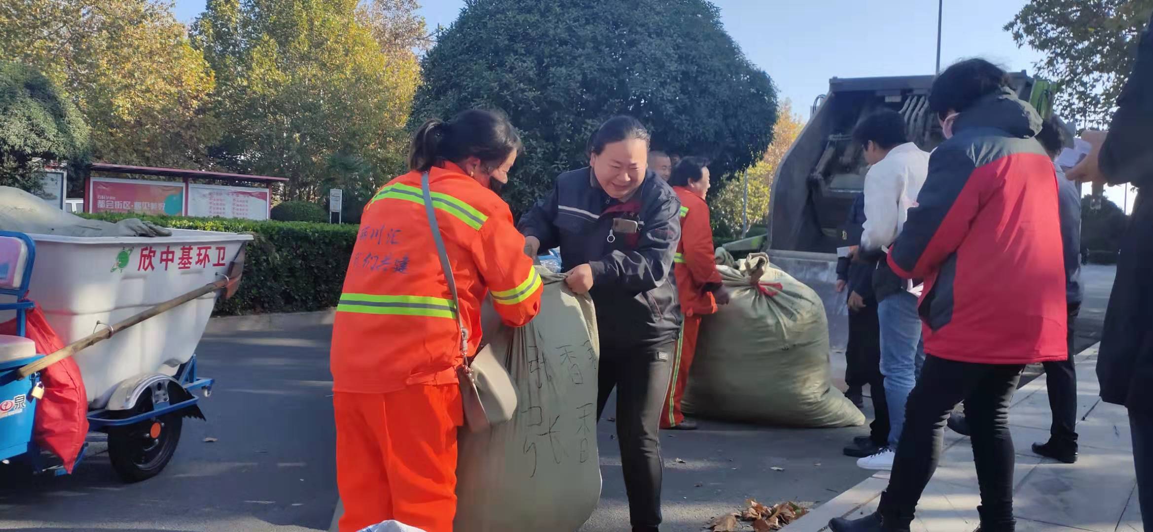 當天是川匯區啟動“推進鄉村振興、關愛環衛工人”專項行動的第一天。該行動采取“以枯葉換票證、憑票證兌換用餐服務”模式,引導鼓勵環衛工人收集枯葉。在新民街北段落葉收集點,前來送枯葉的環衛工人絡繹不絕。李宗喜實地查看活動開展情況,與環衛工人、收集點工作人員親切交流,了解工作中遇到的問題,提出指導意見。