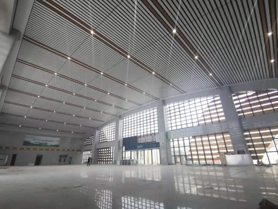 走進總建筑面積3980平方米、高18米的站房,寬敞、明亮、溫馨的裝飾風格端莊大方,又給人一種時尚現代的感覺。站房共兩層,一層中間為候車廳,兩側分別為出站廳及售票廳;二層主要布置設備及辦公用房。