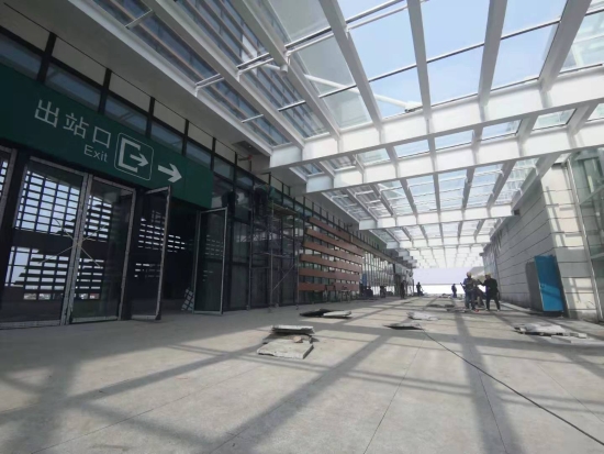 經過檢票機安檢通道,乘電梯或步梯通往站臺。該站站場設2臺4條(含正線2條),設基本站臺、側式站臺各1座,站臺最高聚集人數為600人。
