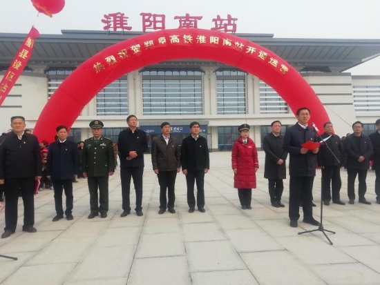 當日上午,暖陽高照,淮陽南站站前廣場人頭攢動。“高鐵來了,激動人心”。為祝賀高鐵開通這一大喜事,淮陽縣舉行了簡樸的鄭阜高鐵淮陽南站正式運行儀式,縣四個班子領導和有關部門負責同志及附近廣大群眾參加了儀式。