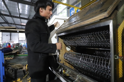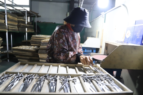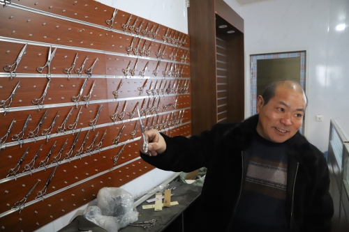 “我也是從小就外出,一直在江蘇蘇州發(fā)展,做刀剪十幾年了。現(xiàn)在家鄉(xiāng)環(huán)境好,回來發(fā)展比在南方還有前途。”今年49歲的陳政治老家是虎崗鄉(xiāng)陳莊村。被虎崗鄉(xiāng)黨委政府的誠(chéng)意所感動(dòng),他很樂意回鄉(xiāng)發(fā)展,因?yàn)榉孔鈨r(jià)格低、務(wù)工人員穩(wěn)定,營(yíng)商環(huán)境又好,所以他帶著自己的外甥楊亞杰和技術(shù)團(tuán)隊(duì)回到老家鄲城,還能助力家鄉(xiāng)經(jīng)濟(jì)發(fā)展。陳政治說,他的廠子所生產(chǎn)的東升、jack、亞寶等品牌刀剪全部銷往全國(guó)高檔理發(fā)店,產(chǎn)品供不應(yīng)求。像這樣的高檔刀剪生產(chǎn)廠家,在中原地帶極少。剛投產(chǎn)幾個(gè)月,他已經(jīng)接到了來自韓國(guó)、日本等地的訂單。