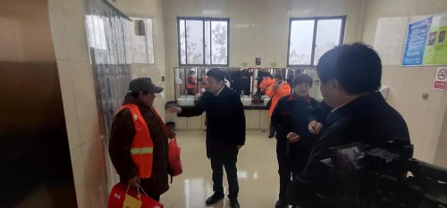 1月22日上午,在新春佳節來臨之際,區長李湛先后到機西高速出口附近公廁、城北街道辦事處朱樓行政村等地走訪慰問環衛工人、困難黨員、貧困戶,向他們送上慰問品和黨委政府的節日祝福。