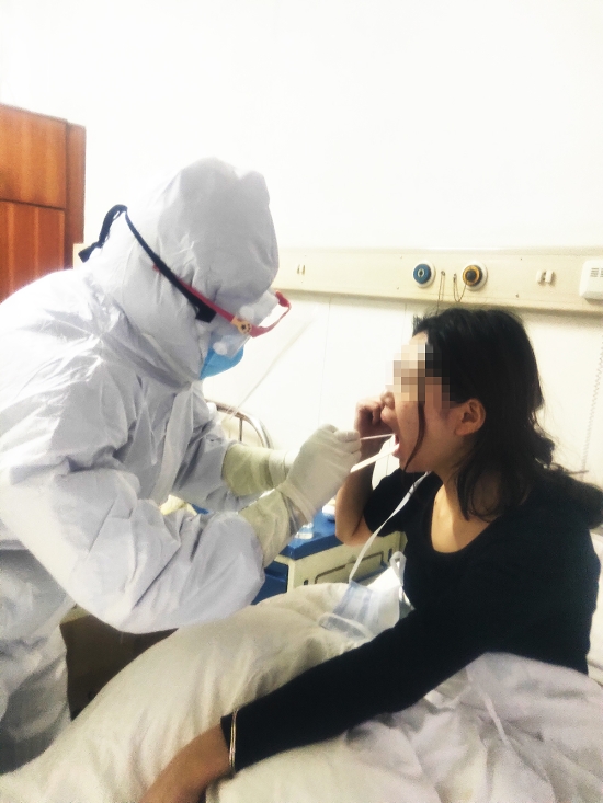 “第一次給疑似病人采集咽拭子時,說實話,難免有點緊張。病人張大嘴巴,棉簽剛一伸進去,他就干嘔起來,然后猛烈嗆咳,連續兩次才完成采樣。”胡敏在剛剛結束一例標本采集后說:“現在,我都是下手又快又準,避免病人干嘔和嗆嗽。”