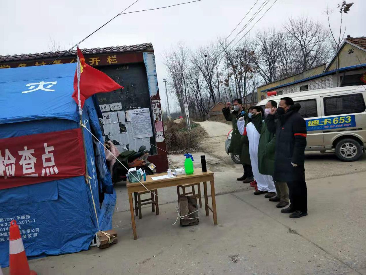“我莊嚴宣誓,為維護人民群眾身體健康及生命安全,全力做好新型冠狀病毒感染的肺炎疫情防控工作,誓死捍衛新時代黨員干部的使命與擔當?!边@是付集鎮黨委副書記曹懷永帶領張埝卡點宣誓的場景。2月5日,這段感人而又讓人充滿信心的宣誓聲,在付集大地相繼響起,張埝卡點一線臨時黨支部正式成立。