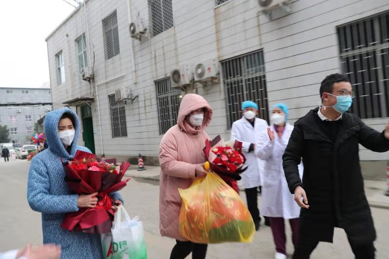 “2月2日,我院一次同時治愈2名患者之后,縣里給我們記功嘉獎,還頒發了獎金,全院醫護人員都很振奮,今天又有2名患者治愈出院,更加堅定了我們戰勝疫情的信心和決心。”在采訪現場,感染科主任張志軍激動地說。