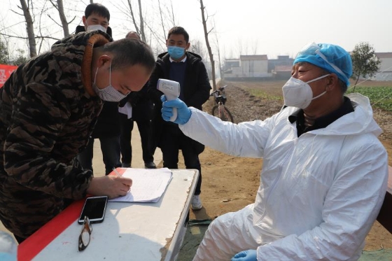 起初,苑統俊配合村干部在村里宣傳疫情防控政策、方法,1月25日,我省啟動一級應急響應,港區迅速做出響應,在轄區內各個村莊社區設置疫情監控點,限制人員流動,全天候監測進出人員身體狀態。苑統俊擔起監控點村醫的職責,負責該村一至四組的疫情防控。他每天騎電動車前往孫莊村監測點值守,為過往人員測量體溫、觀察外地返鄉人員狀態、登記觀察正處在隔離期的從湖北、武漢返鄉人員體溫數據,為鄉村干部開展防控工作提供技術支持。